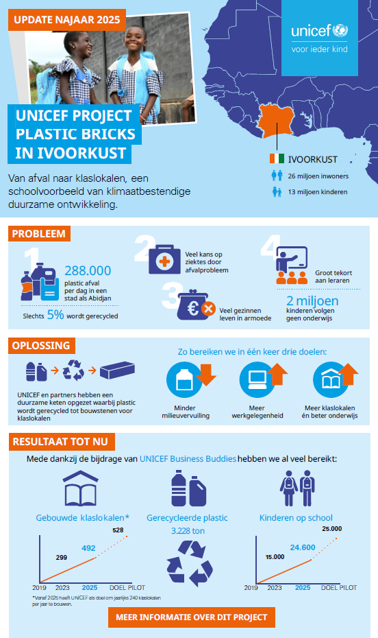 Compas Management & Advies is trotse sponsor van het Plastic Bricks-project van UNICEF in Ivoorkust. Met dit project dragen wij bij aan een innovatieve oplossing voor twee urgente uitdagingen: plasticvervuiling én het tekort aan veilige, duurzame schoolgebouwen.